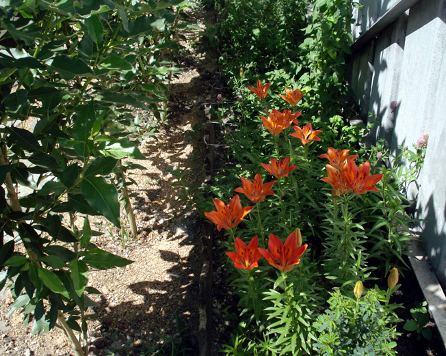 В тени пирамидальных тополей лилии чувствуют себя неплохо. И на второй год я распознал декоративный вьюн, с которым в прошлом году боролся. Хочу всю ограду им обвить.