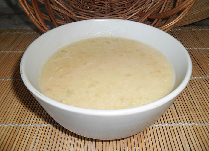 Рецепт на базе эстонской гороховой молочной каши. Горох отвариваем, пюрируем, добавляем обжаренный на сливочном масле лук, сливки (молоко) до консистенции жидкого пюре, кипятим пару минут. Это очень вкусно!