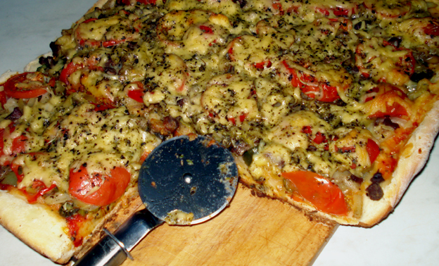 Всё лето ждал, когда кто-нибудь из гостей закажет пиццу. Не дождался. Соскучился. В отличие от моих городских гостей, я не хожу в пиццерии и кафе, где это — обычное блюдо. Ну и, собственно, вот.