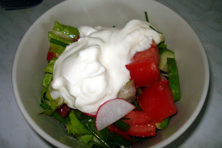 Городские знают, что салат — это такая безвкусная зелёная бодяга, которая круглый год продаётся в супермаркете по 35 рублей за салафановый пакет (в моё время столько стоила).