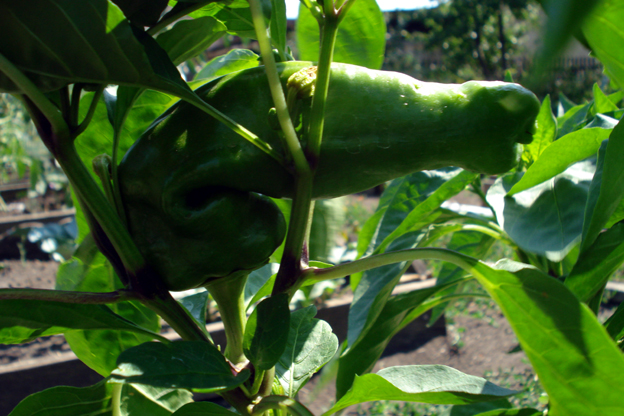 А вот и ещё открытия: оказывается, у меня уже растут баклажаны и вот такой вот, похожий на фигу, перец: