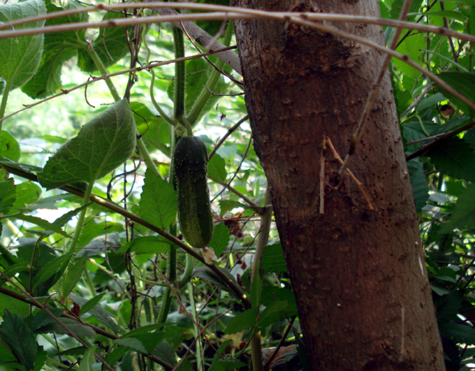 А огурцы уже залезли на деревья: