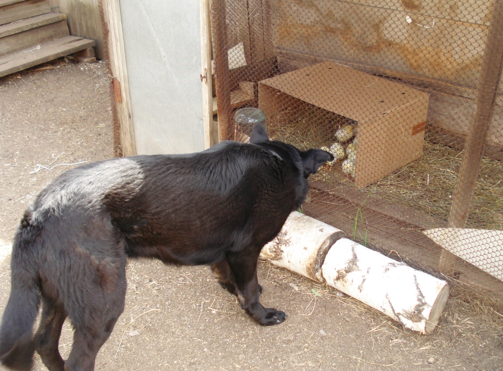10 бройлеров 6 дней и 10 несушек породы «Родонит» 12 дней от роду поселились в цыплятнике. Ну, а считать их будем по осени… Главное уберечь их от «охранника» — уж больно он тщательно их «стережёт»!