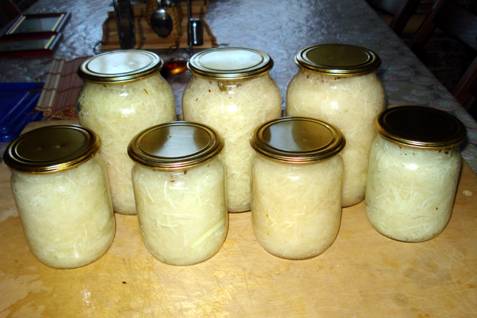 Салат из белого кольраби в маринаде. Кажется, это последний маринад в сезоне. Останется ещё кутчуп и квашеная капуста. Не дождусь покончить с сезоном заготовок.