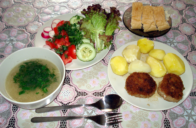А это фото начала недели. Обычный, казалось бы, ужин. Но это рекордный ужин — всё было приготовлено за 20 минут!