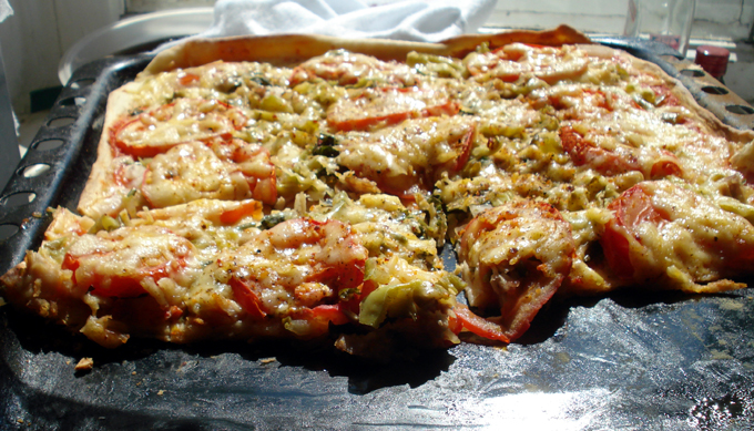 У нас тут битва с дураками, поэтому я начал освобождать место в морозилке для нового поступления мяса. Сварил ведро вишнёвого компота, приготовил мороженую малину с пломбиром, а также сварганил пиццу с замороженым перцем и травками, курицей и маринованными огурчиками.