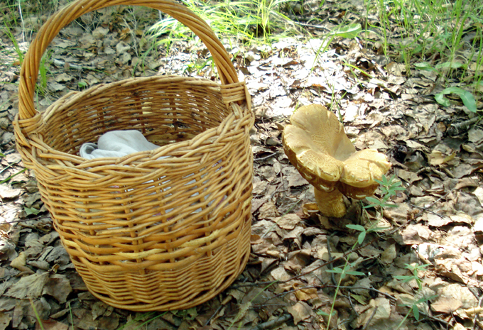 Результаты похода за грибами могли бы быть лучше, если бы дождь прошёл не только над деревней, но и в лесу. А там его, как выяснилось, не было. Облом-с! (Но полкорзины я всё же набрал: белые, сыроежки и вешенки)).
