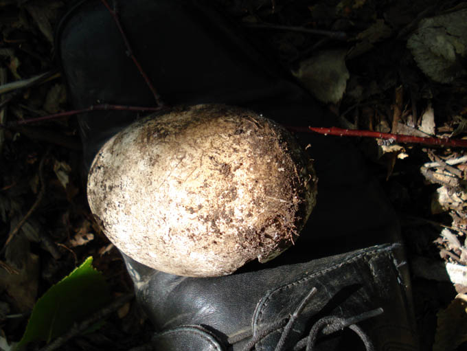 А такая вот «скорлупка» была обнаружена в лесу. Неужто у нас страусы от засухи завелись?