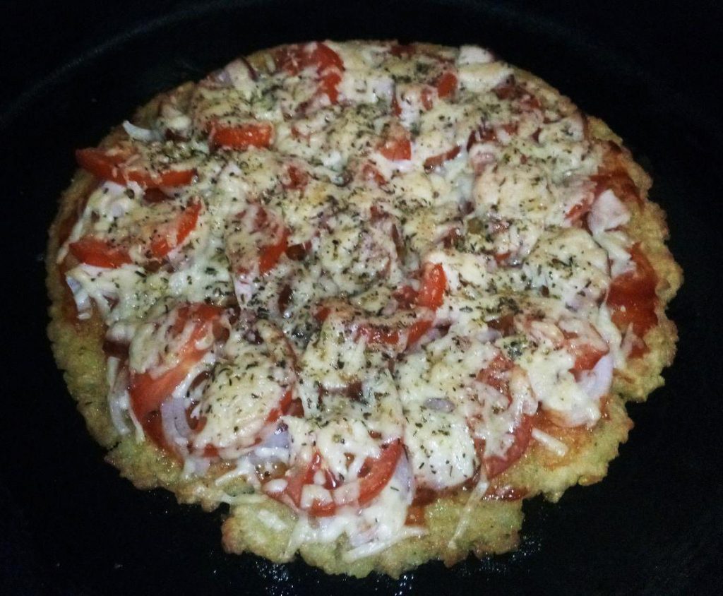 Пицца. Вместо лепёшки из теста — большой такой драник, предварительно обжаренный на сковороде, чтобы образовалась корочка, не позволяющая ей высохнуть в духовке (за эту особенность я не очень люблю бабку, запечённую в духовке — она становится жёсткой и сухой). Поверх основы — кетчуп, лук, кусочки копчёного куриного рулета, помидоры, сыр, специи. Блин, это вкусно, и это не блин! (есть подозрение, что и холодной эта пицца будет вкусной).