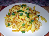 Картофель Романофф (Картофель, сыр, сметана, лук). |